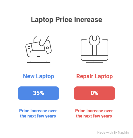 Beyond the cost savings, repairing an existing computer avoids a major headache. You don’t need to transfer data, reinstall software, or reconfigure email accounts and apps. Everything stays as it is, which saves time and avoids the usual frustration that comes with setting up a brand-new machine.